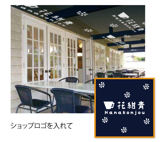 オリジナルのプリントで店舗の雰囲気を作りビジネス広告としてもお使いいただけます。